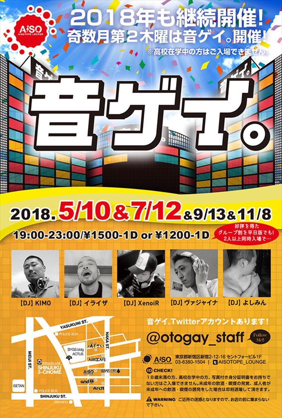 音ゲイ。2018年も隔月第二木曜継続開催!