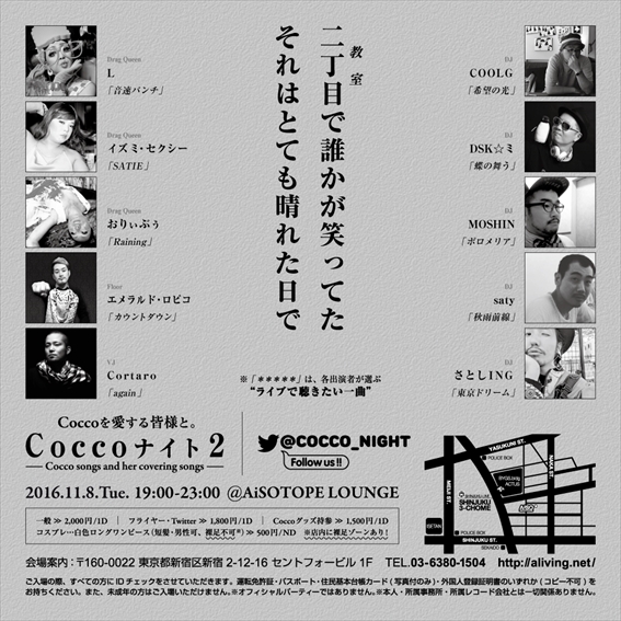 ◇グッズ割:¥1,500/1D (Coccoグッズ持参)