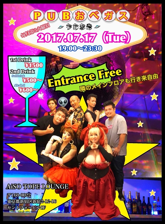 毎月第1月曜日開催中のAiSOの人気ショーイベント「おベガス!」のバー営業!