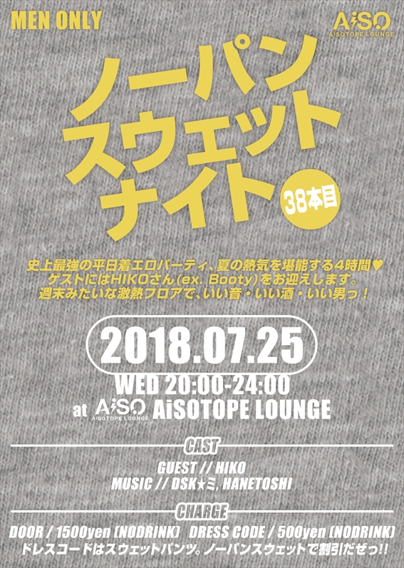 ・ノーパンスウェット割引は受付時に申告+確認となります。事前にノーパンスウェットになってご来場下さい。スタッフが確認します!