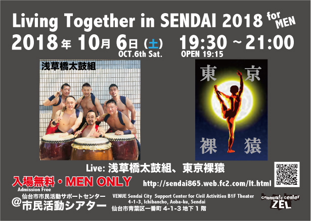 浅草橋太鼓組と東京裸猿が出演「Living Together in SENDAI 2018 for MEN」