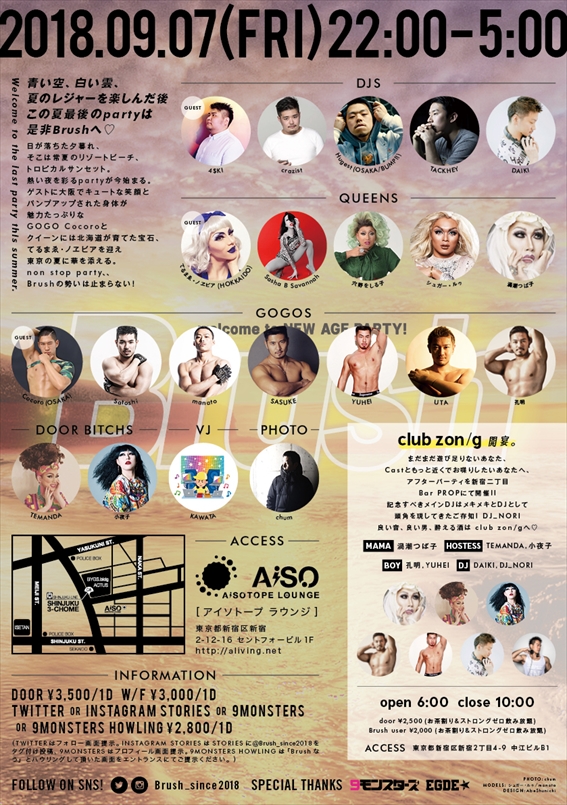 この夏最後のpartyは是非Brushへ♡