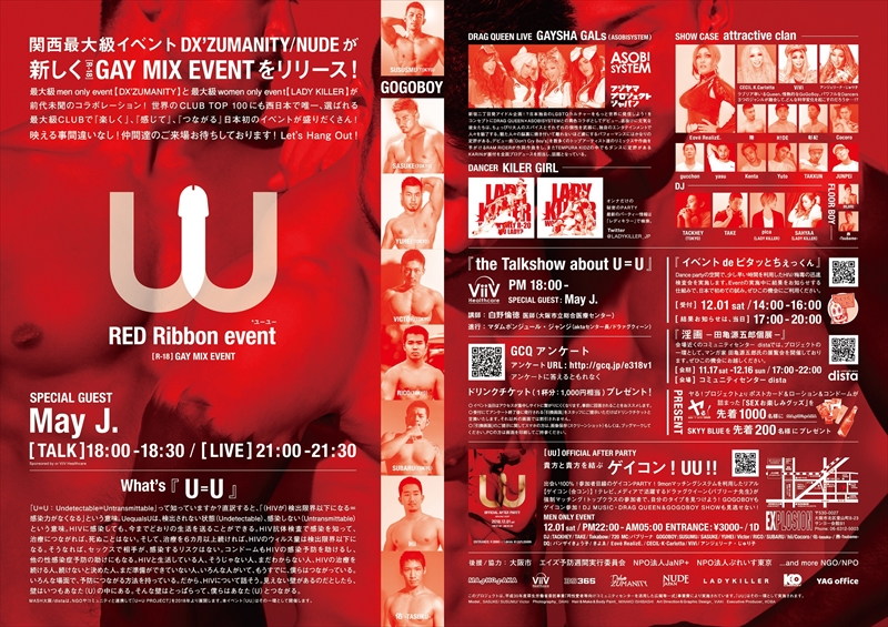 DX'ZUMANITY GROUP produce Red Ribbon event『UU』ユーユー -gay mix event-