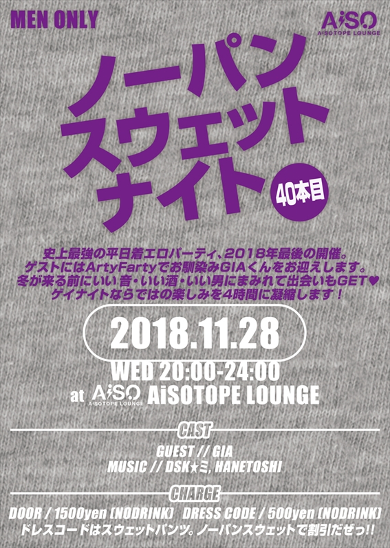 下着を着用せずにスウェットパンツを履く「ノーパンスウェット」がドレスコードです。上は脱ぎません。
