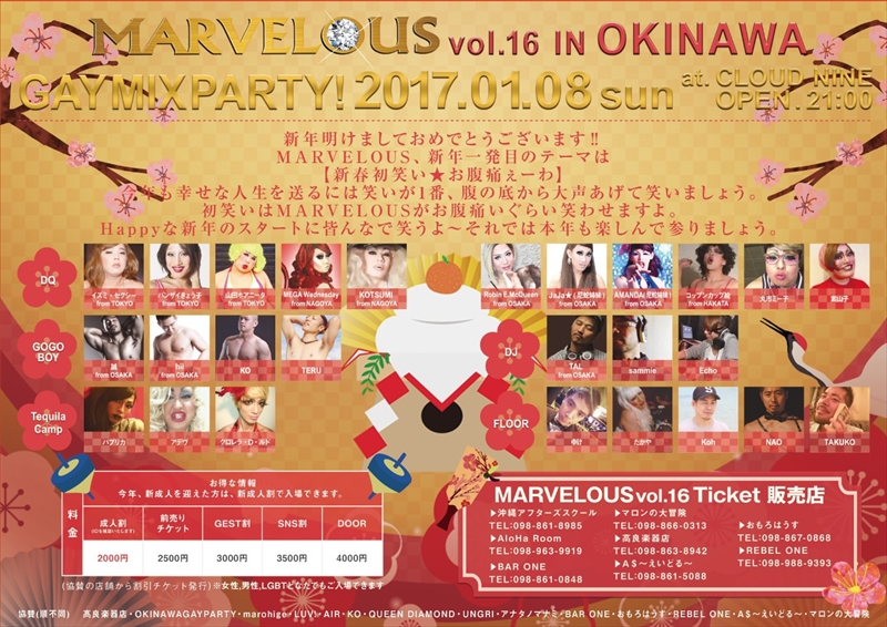 初笑いはMARVELOUSがお腹痛いぐらい笑わせますよ。Happyな新年のスタートに皆んなで笑うよ〜それでは本年も楽しんで参りましょう。