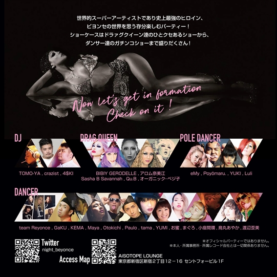 ■DANCER:team Reyonce, Gaku, KEMA, Maya, Otokichi, Paulo, tama, YUMI, お蜜, まぐろ, 小座間環, 鳥丸あやか, 渡辺歪美