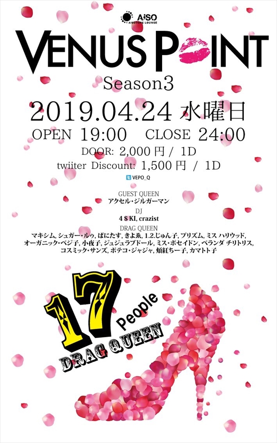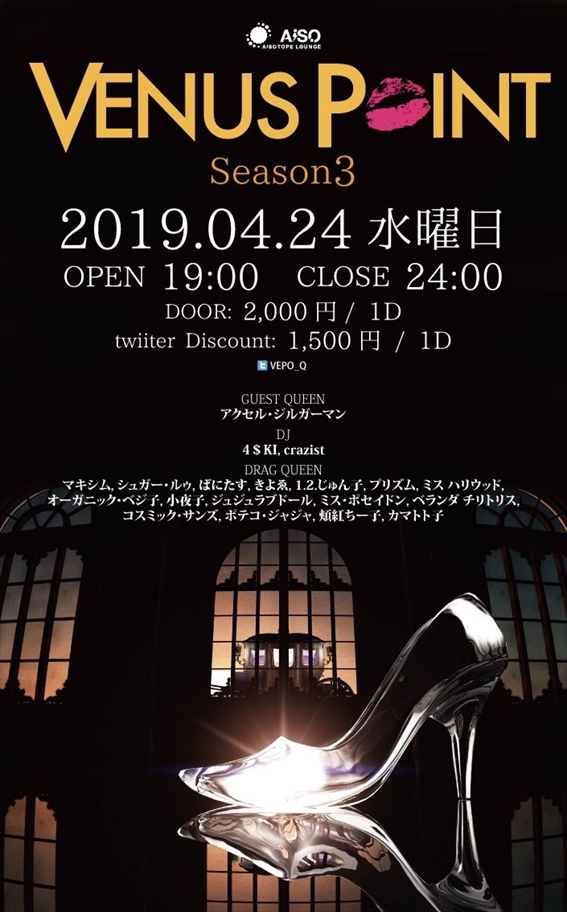 ■DRAG QUEEN:マキシム, シュガー・ルー, ばにたす, きよゑ, 1.2.じゅん子, プリズム, ミス ハリウッド, オーガニック・ベジ子, 小夜子, ジュジュラブドール, ミス・ポセイドン