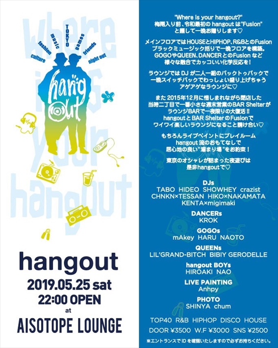 東京のオシャレが詰まった夜遊びは是非hangoutで♡