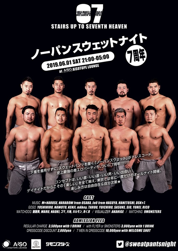 ・ノーパンスウェット割は、入場受付時に申告+確認となります。事前にドレスコードの状態になってご来場下さい。スタッフが確認します。
