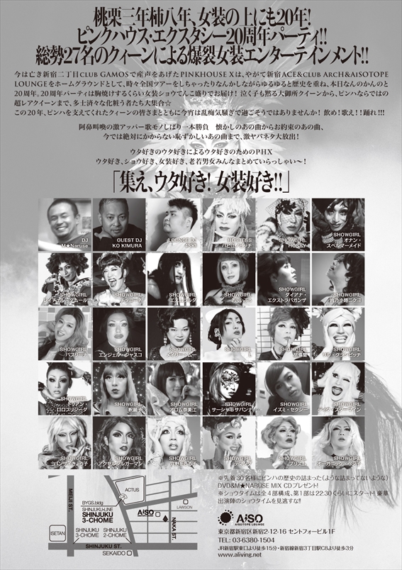 今は亡き新宿二丁目club GAMOSで産声をあげたPINKHOUSE Xは、