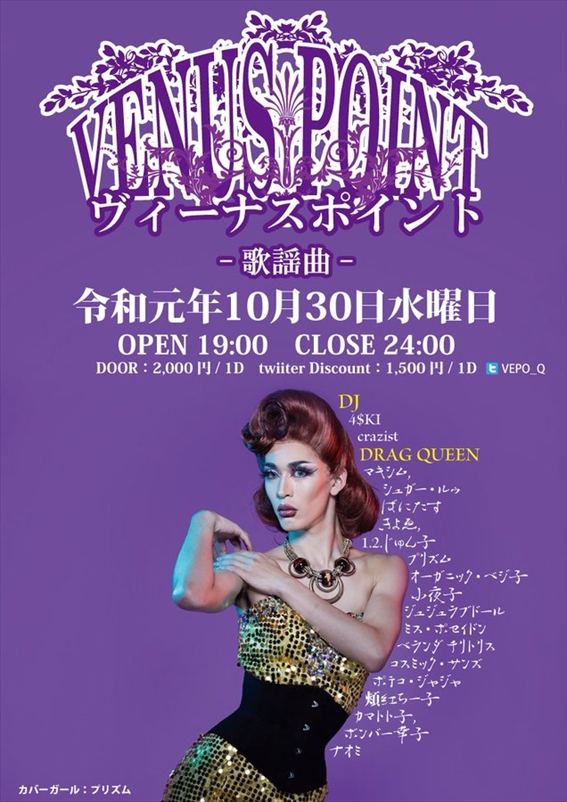 ■DRAG QUEEN:マキシム, シュガー・ルゥ, ばにたす, きよゑ, 1.2.じゅん子, プリズム, ミス ハリウッド, オーガニック・ベジ子, 小夜子, ミス・ポセイドン, ベランダ チリトリス, ポテコ・ジャジャ, 頬紅ちー子, カマトト子, コズミック・サンズ, ボンバー幸子, ナオミ
