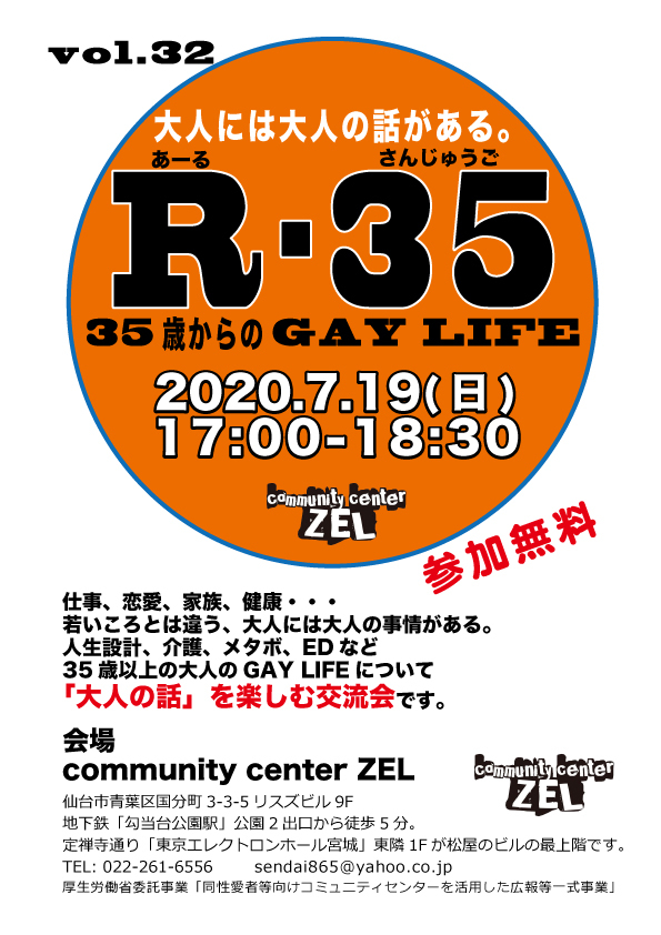 [R-35] 35歳からのGAY LIFE -大人の会話を楽しむ交流会- (仙台)
