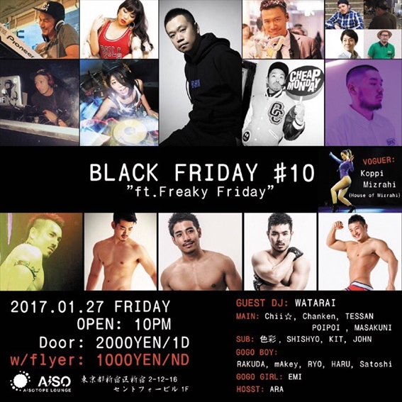 2丁目シーンに新たな旋風を巻き起こすブランニューパーティー『BLACK FRIDAY』が、AiSOTOPE LOUNGEに会場を移して心機一転開催!!