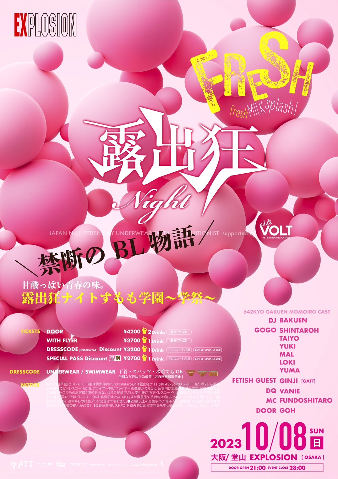 ★ドレスコード割 及び パス割は褌太郎(@fundoshitaro)または露出狂ナイト(@642kyo)のTwitterアカウントフォロー必須