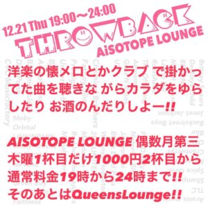 時間は19時〜24時 場所はアイソトープラウンジ!