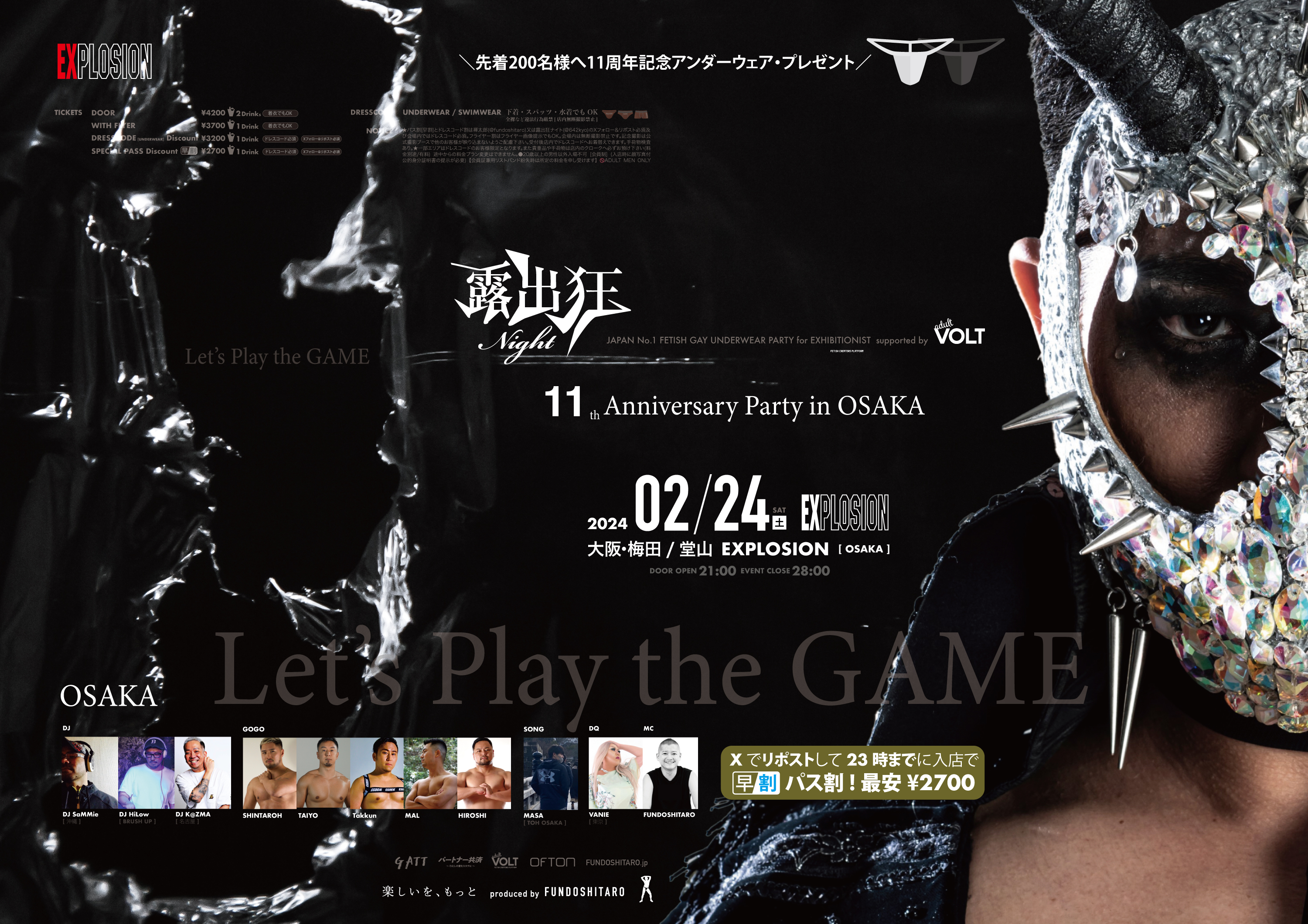 ★ドレスコード割とパス割(早割)は褌太郎(@fundoshitaro)または露出狂ナイト(@642kyo)のXフォロー&リポスト必須 及び 会場内ではドレスコード必須