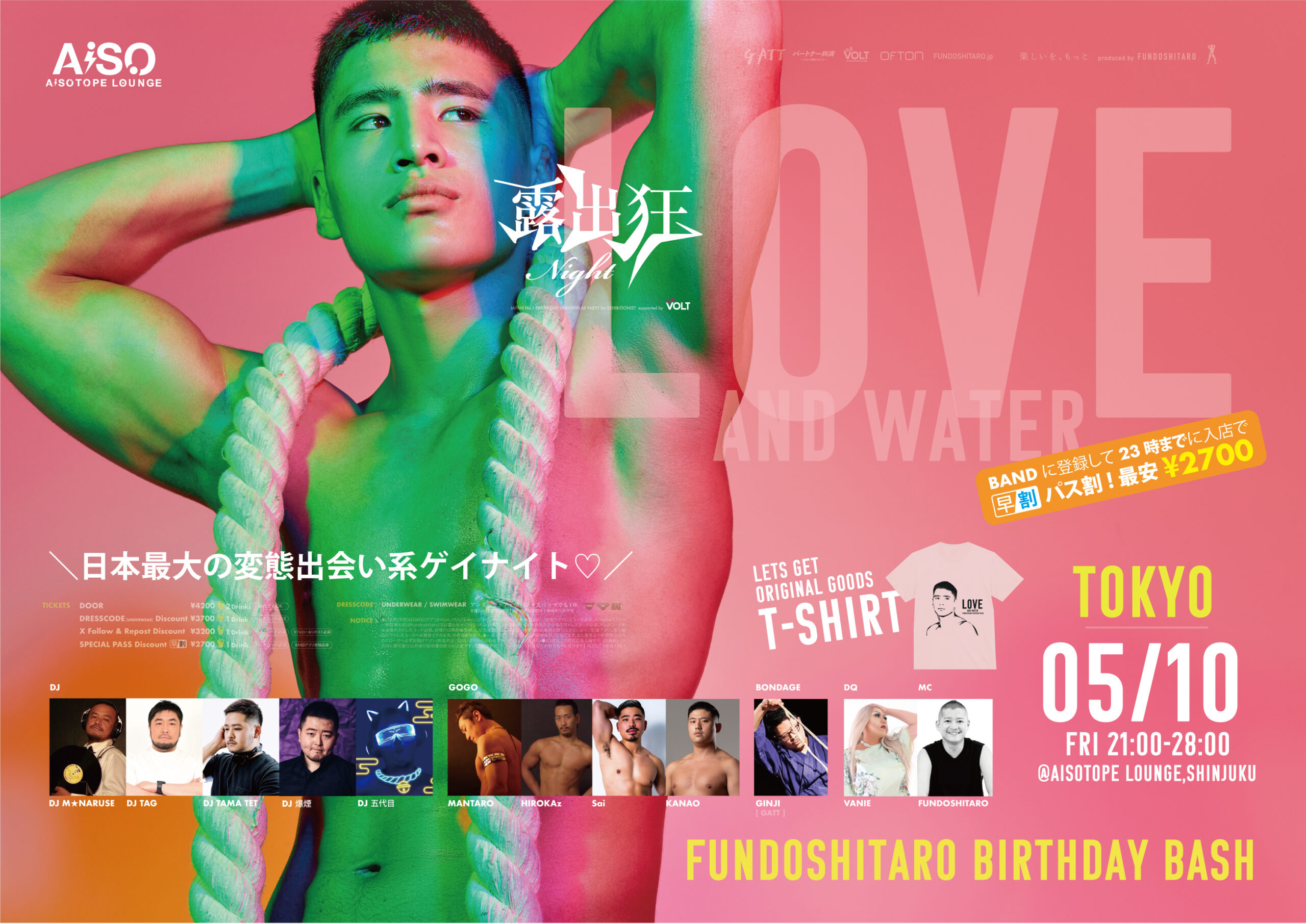 ★ドレスコード割(Twitter・Xフォロワー限定)は褌太郎( https://twitter.com/fundoshitaro )又は露出狂ナイト( https://twitter.com/642kyo )のXフォローの上、会場内ではドレスコード必須。パス割[早割]はBANDアプリ( https://taro.band/ )へ参加申請して23時までにご来店の方限定・受付でアプリ画面提示。