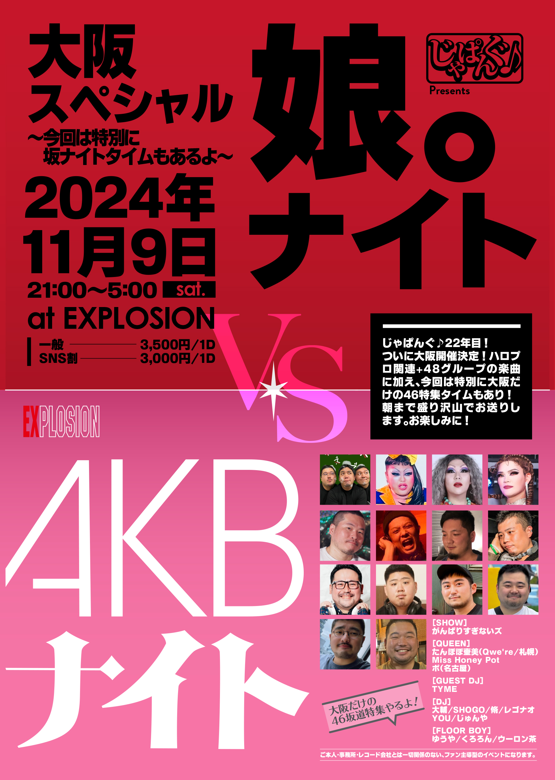 じゃぱんぐ♪ Presents 「娘。ナイト VS AKBナイト vol.2 大阪スペシャル!」 -今回は特別に坂ナイトタイムもあるよ-