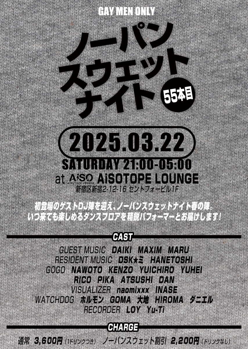 ・20歳以上のゲイ男性のみご入場いただけます。