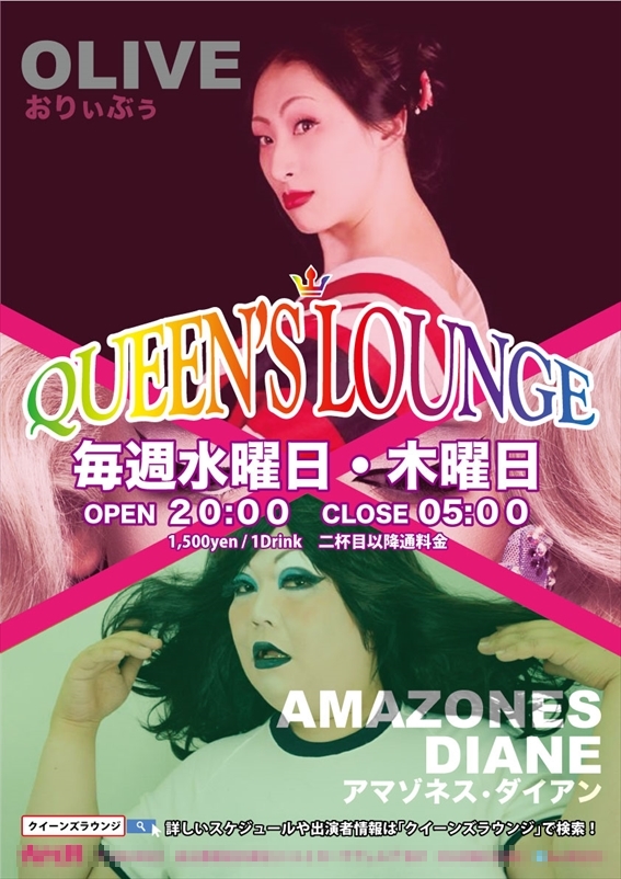 毎週水曜日、木曜日とDRAG QUEENのホステスが、妖艶かつ賑やかにおもてなし!