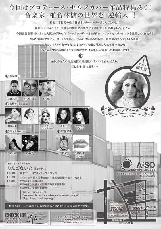 新宿二丁目カルチャー×椎名林檎作品の異文化交流を大音量でお楽しみください・・・