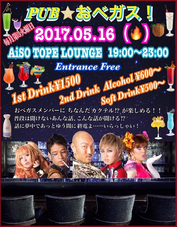 毎月第1月曜日開催中のAiSOの人気ショーイベント「おベガス!」のバー営業!