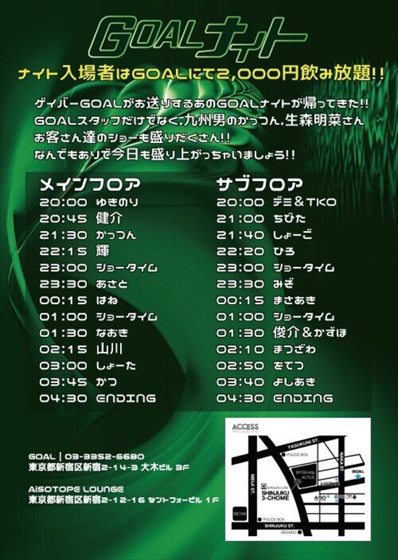 □Twitter:https://twitter.com/GOAL_shinjuku2