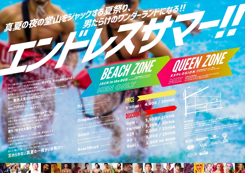 ※女性のお客様は上記料金で1Dのみとなります。また[BEACH ZONE (JACK in the BOX)]にはご入場いただけません。あらかじめご了承ください。