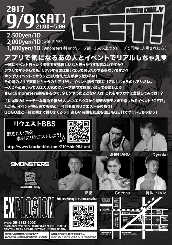 主に洋楽のキャッチーな選曲で懐かしいオネエハウスから最新の歌モノまで楽しめるイベント「GET!」