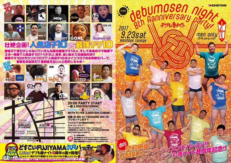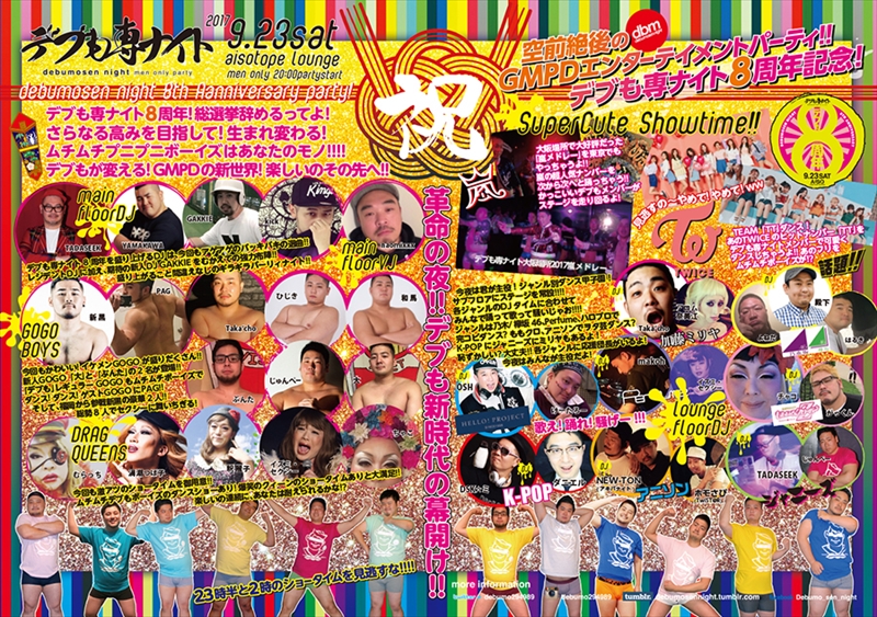 ■DJ:チャコ(がっくん), OSH(けーたろー), 殿下&よねだ(はるき), まこと(イズミセクシー), TADASEEK(じゅんぺー), NEW-TON(アキバナイト)(ホモさぴ(TwiST@R)), DSK☆ミ(ダニエル)