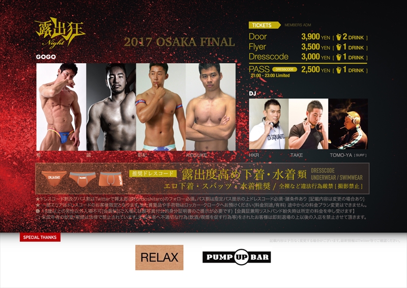 ★ドレスコード割 及び パス割はTwitterで褌太郎(@fundoshitaro)のフォロー必須