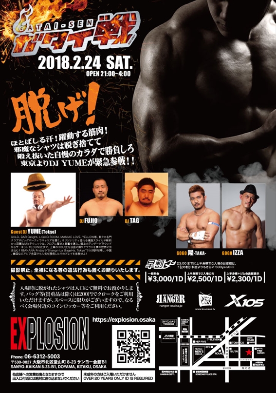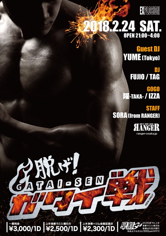 ※早割!23:00までに上半身裸でご入場の方は上記の割引料金よりもさらに500yen OFF