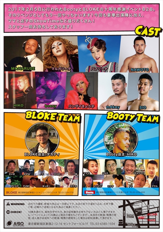 2017年2月5日に行われたBootyとBLOKEの10周年感謝イベント【B2B】。