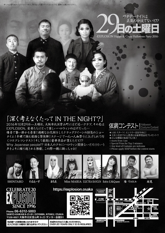 29日の土曜日~サタデーナイトは正気の沙汰でないと!?~ -EXPLOSION Happy & Crazy Halloween Party 2016-