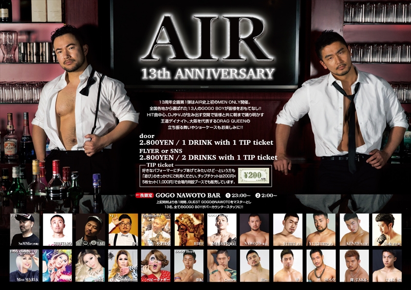13周年企画第1弾はAIR史上初のMEN ONLY開催。